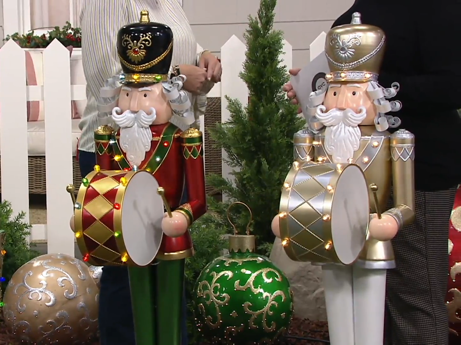 Hand-painted in vibrant red, white, gold, silver, and black, they're embellished with intricate details like snowflake buttons and soft white LED bulbs, and the scepter they hold creates a festive atmosphere.